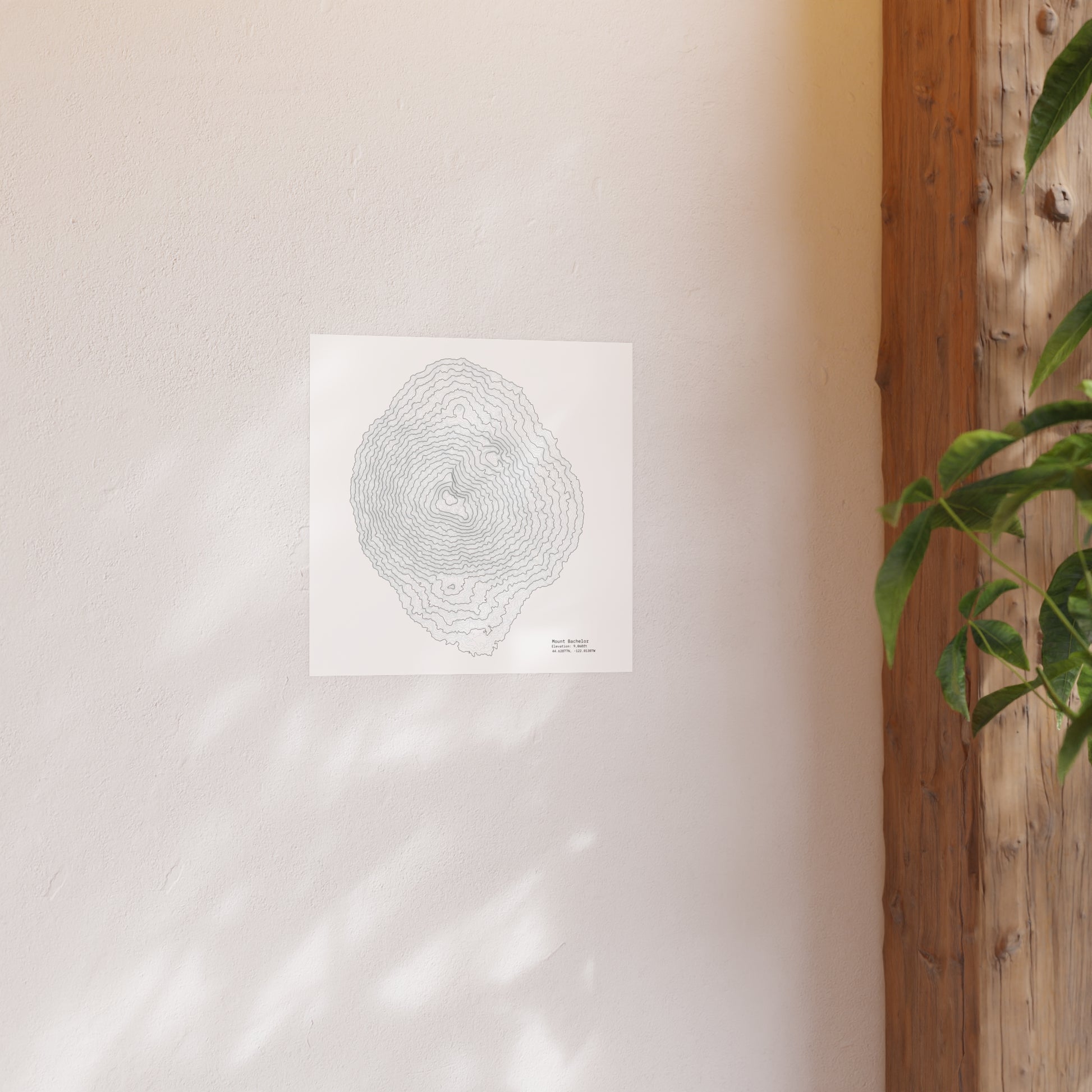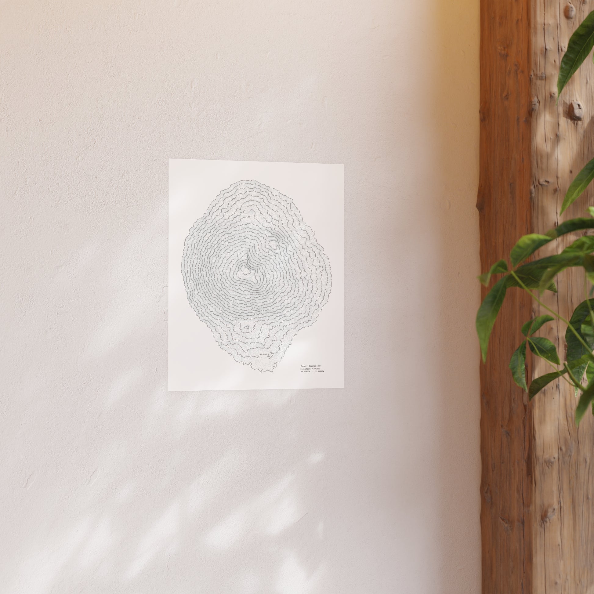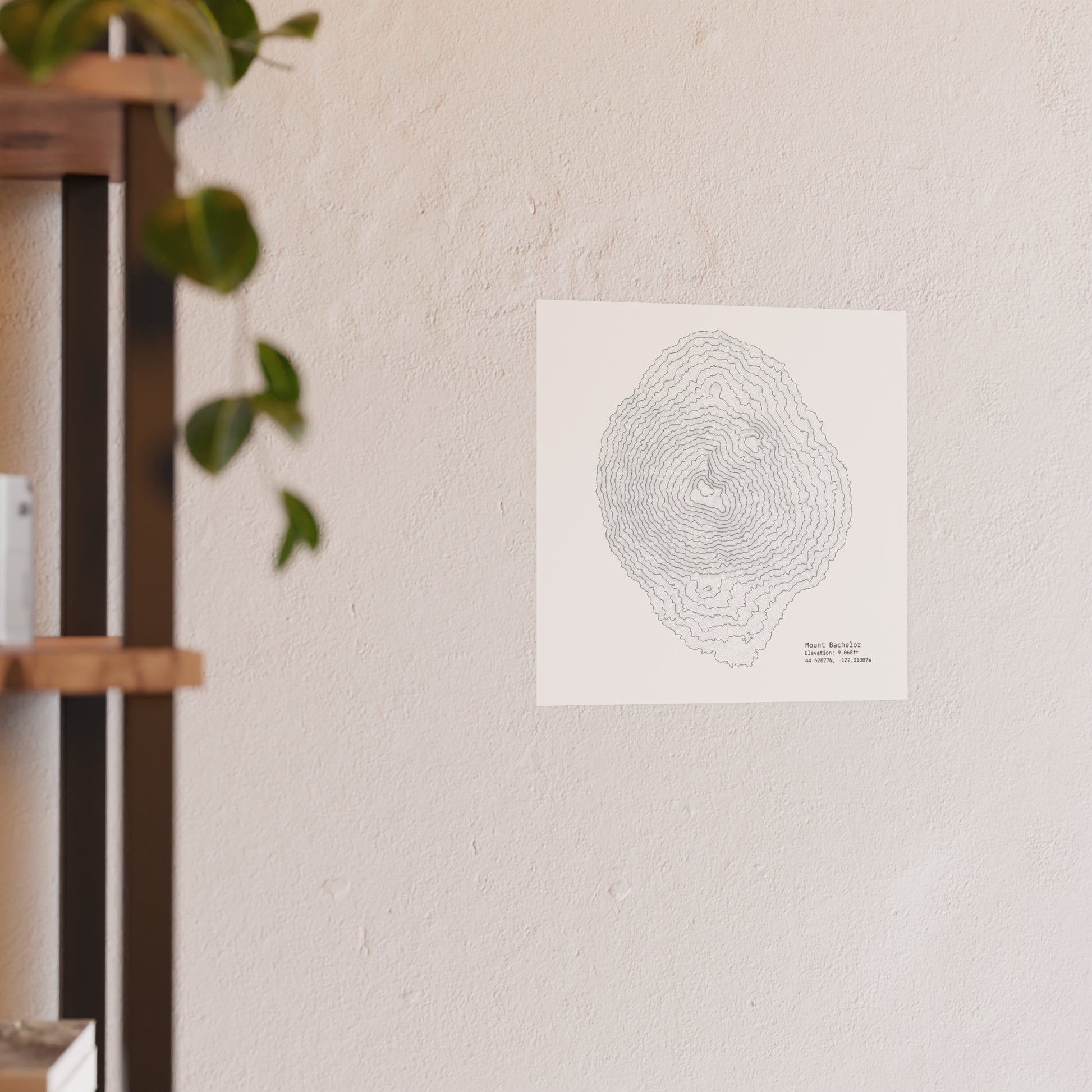 Mount Bachelor Topographic Satin Poster, Landscape Art Decor, Unique Gift, Wall Art, Hiking Decor, Home Office Decoration