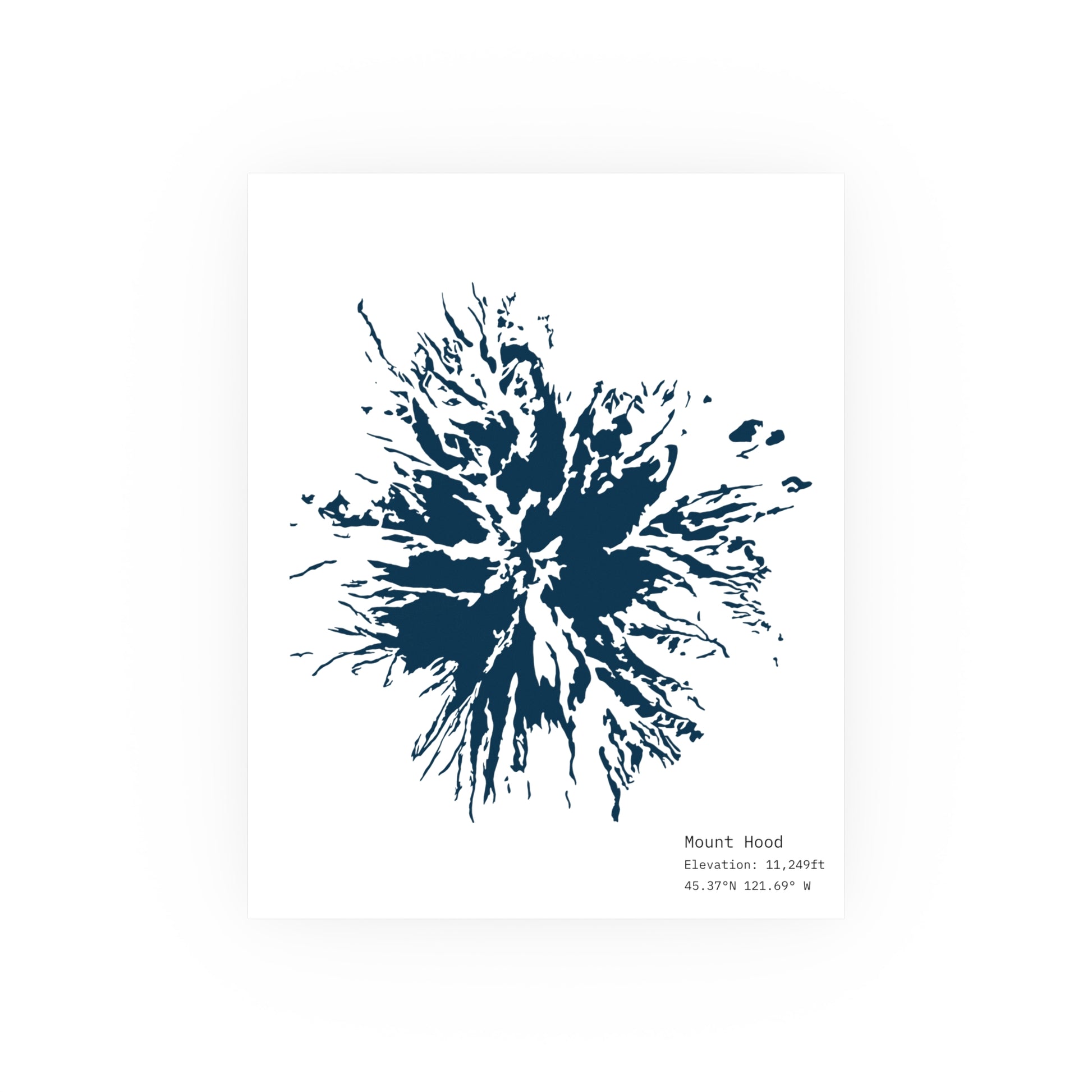 Mount Hood Glacier Map Print Celebrate the iconic peak of the Pacific Northwest with this striking, minimalist print featuring the outlines of Mount Hood's powerful glaciers (such as Eliot, White River, and Zigzag Glaciers).